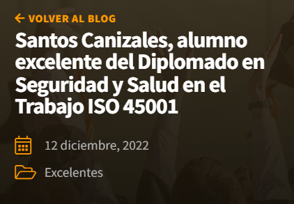 Santos Canizales Salazar, ha obtenido una calificación brillante de 96.15 sobre 100 en el Diplomado en Seguridad y Salud en el Trabajo ISO 45001.